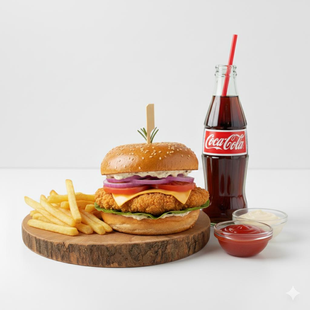 100 gr Çıtır Tavuk, Burger Sos, Marul, Turşu.