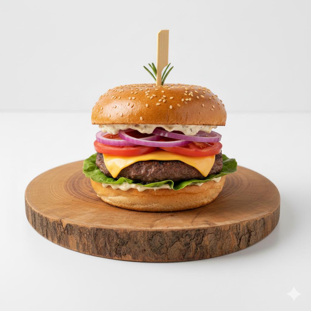 100 gr Dana Eti, Burger Sos, Cheddar Peyniri, Mantar Marul Domates, Turşu..